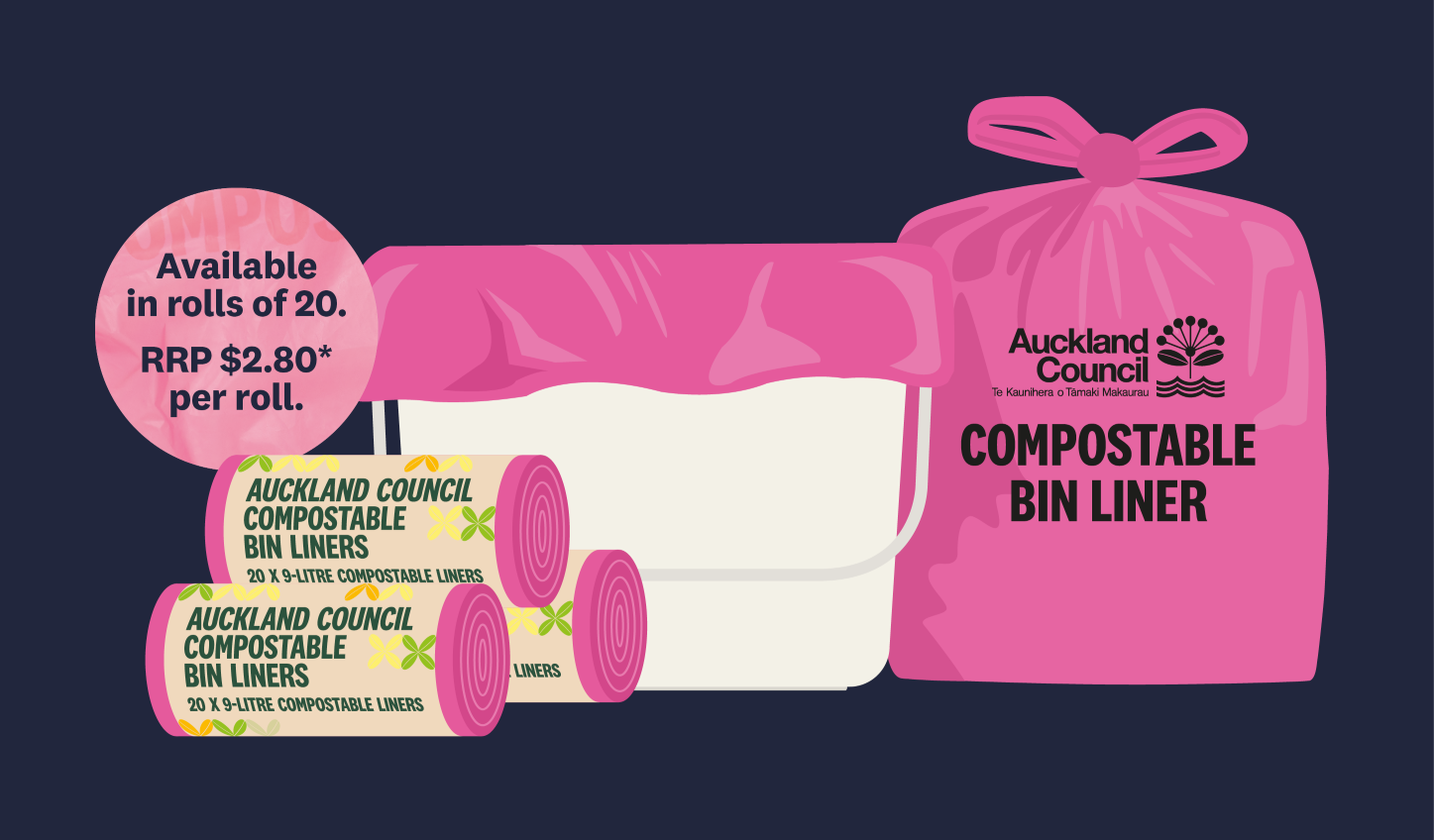 Auckland Council bin liners help keep your kitchen caddy clean and tidy. Our compostable bin liners are your most environmentally-friendly option, they can be broken down in your backyard compost bin.